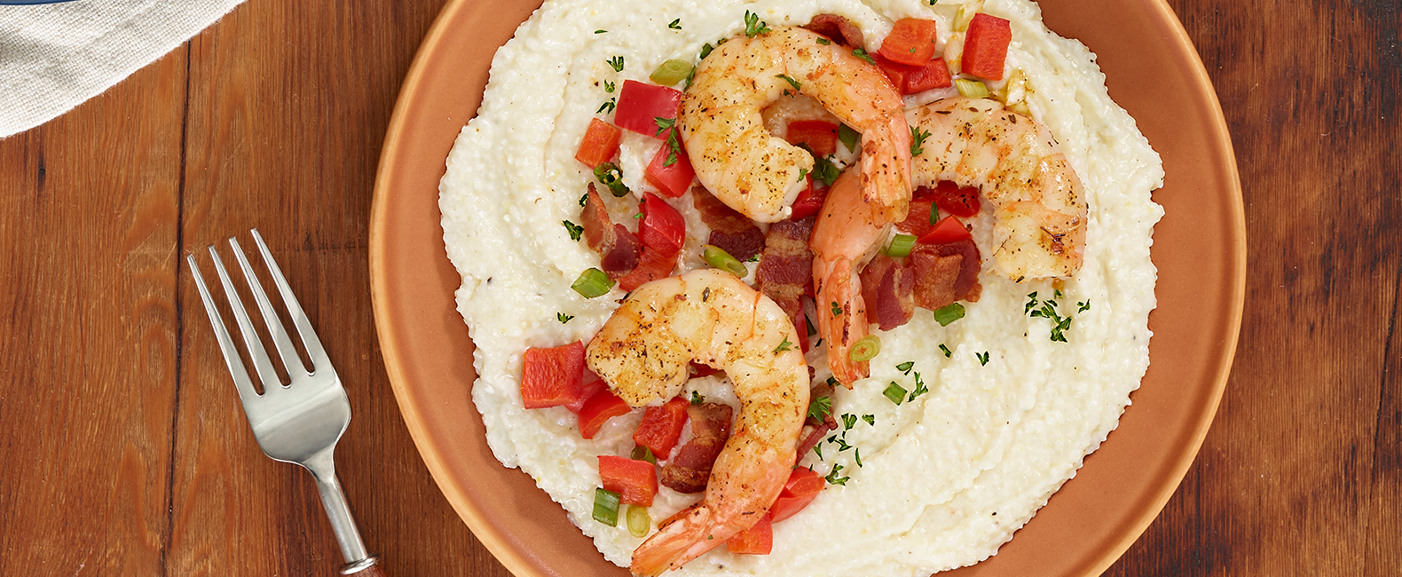 Indulge in this southern style creamy dish for a comforting yet unique lunch or dinner. This Cajun shrimp and grits recipe is a delicious way to enjoy seafood on a flavorful bed of cheesy grits. With Cajun seasoning, cayenne pepper, and smoked bacon, each bite is just as delicious and rich as the last.