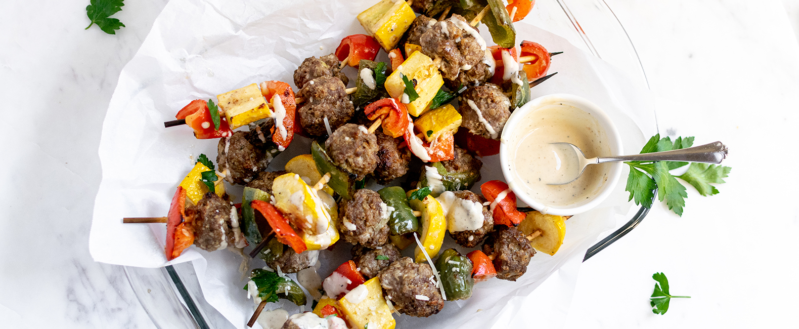 Veggie Meatball Kabobs is a fun recipe to try when you’re short on time or tired after a long day. In just 10 minutes you can enjoy both tender veggies and homemade meatballs. This recipe is a great way to incorporate your favorite veggies in a fresh new way. Not only will this dish become your new go-to recipe, but the kids will love them too.